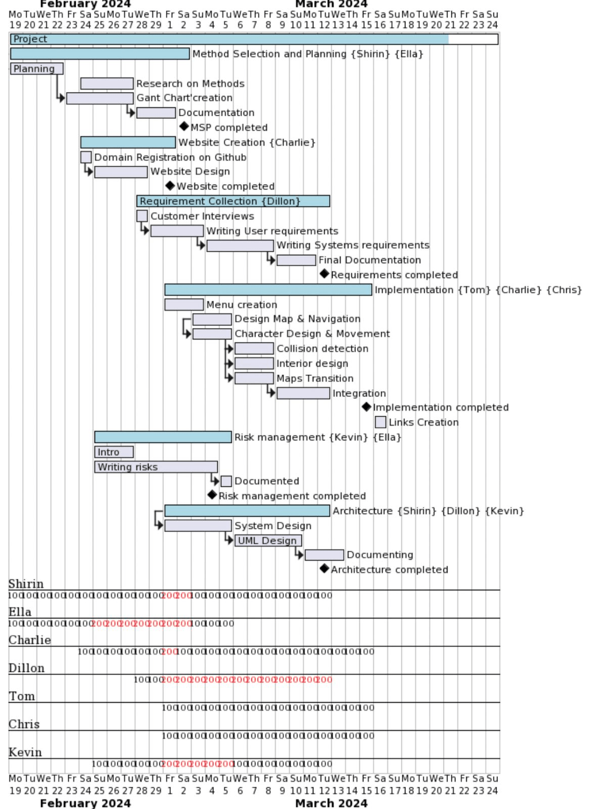Dependencies: Implementation, Website Creation, Architecture, Risk management, Method selection and planning
